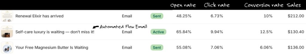 Those automated emails included a welcome message for new subscribers, abandoned checkout reminders, cart and product browse follow-ups, and a post-purchase email. Nothing elaborate. Just foundational systems working in the background.